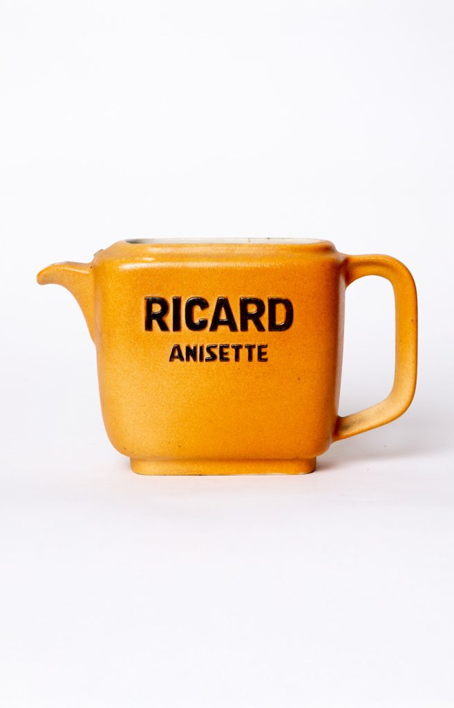 An Art Deco or early modernist Ricard porcelain water jug, created as advertising for Ricard Anisette. In keeping with tradition, anise-based aperitifs were always served with water, giving this piece both purpose and charm.