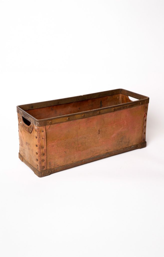 A 1920s Suroy trimmings box made from vulcanised fibre — a strong yet lightweight material. A beautiful piece of French industrial history.